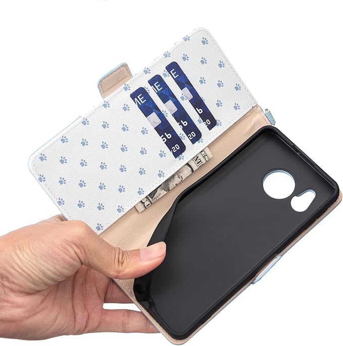 case for AQUOS sense8 SH-54D SHG11カバー アクロス センス8/ あくおすセンス8 ケース 手帳型かわいい 猫の足跡(NENGks )ストラップ付き マグネット式磁気 全面保護 スタンド機能 カード収納 財布型 (A2-青, に適用するAQUOS sense8)