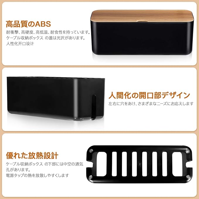 【優れた整理力】ケーブル配線ボックスはごちゃごちゃしたケーブルをすっきり収納でき、デスク周りをすっきり保ちます。内部に超大のスペースで、上蓋を開けられて、手軽に電源タップとケーブルなど整理できます。
