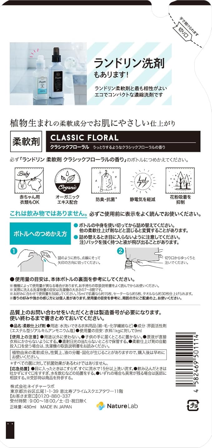 Laundrin'(ランドリン) 柔軟剤 クラシックフローラル 詰め替え 480ml