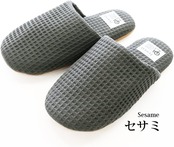☆コットンワッフルが気持ち良い洗えるソフトスリッパ♪☆綿100%のコットンワッフル素材のスリッパは、中敷き甲裏もコットンなので、素足に履いて心地いいアイテム♪
