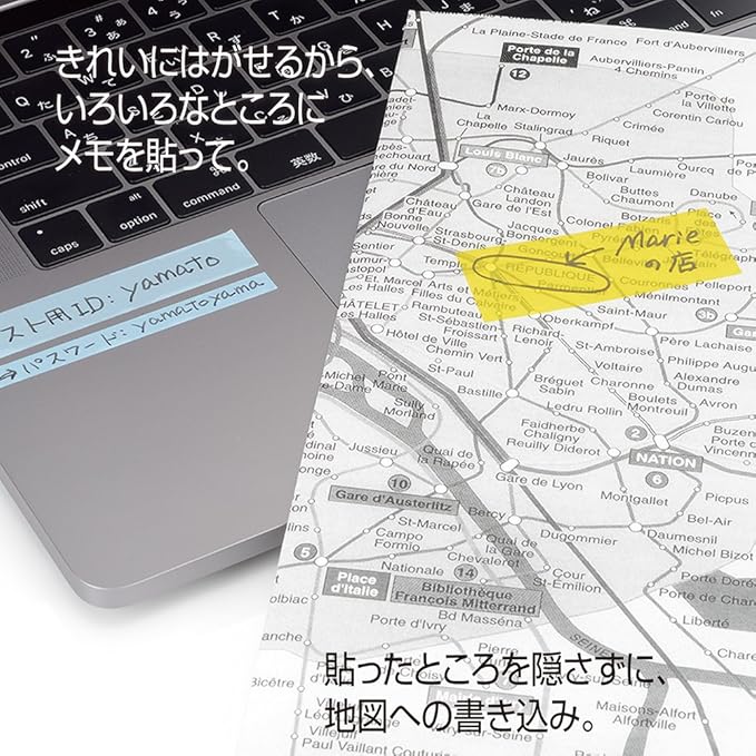 パステルカラーの半透明フィルムフセン、メモックロールテープ。