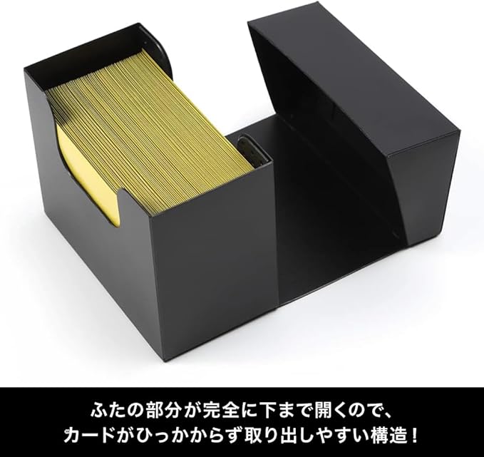 シンプルなデザインに、工夫を加えたデッキケース 皆さんはこんな経験ありませんか? ・「カードが取り出しづらい」 ・「指を突っ込まないと取り出せない」「逆さまにしないとカードが取り出せない」 ・「レザーだと丈夫だけど高い……紙製のものだと安いけどすぐ壊れてしまう…… 」 そんな従来の問題を解決するために開発した商品をご紹介します。