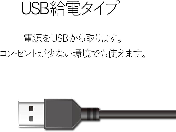 家庭用電源を必要としないUSB電源タイプです。パソコンのUSBポートに接続することで、手軽にお楽しみいただけます。