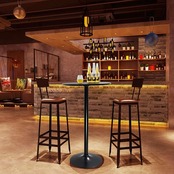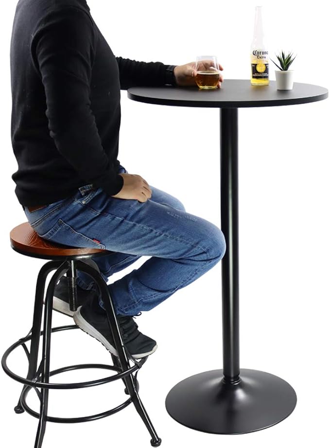 KKTONER 丸バーテーブル カフェテーブル カウンターテーブル 食卓パブテーブル 机 デスク ブラック (黒)