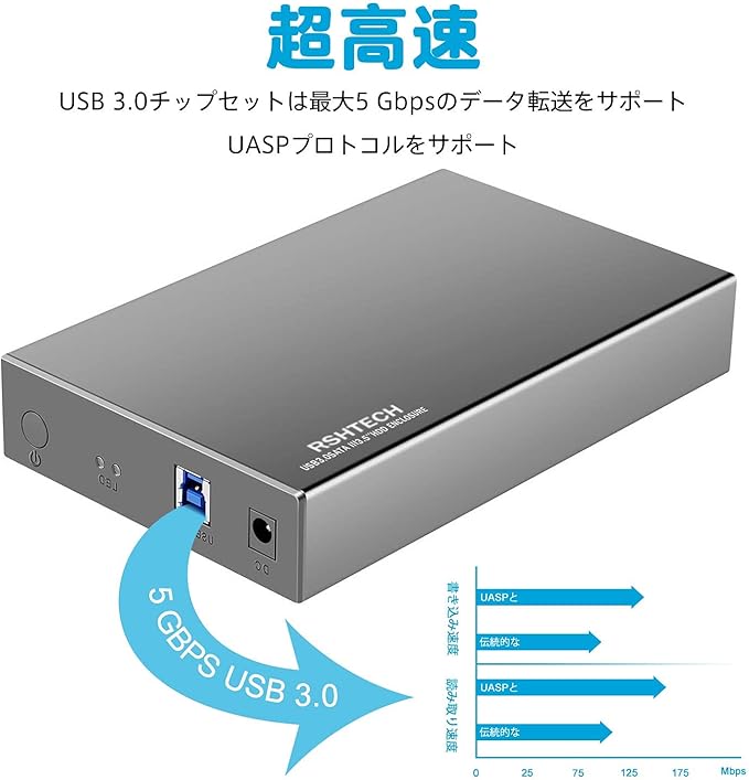 HDDケース 3.5インチ RSHTECH USB3.0 ドライブケース アルミ製 外付けハードディスク SATA接続 最大16TBをサポートUASP 自動スリープ機能付き (RSH-339)