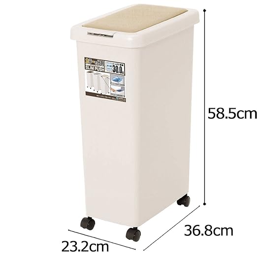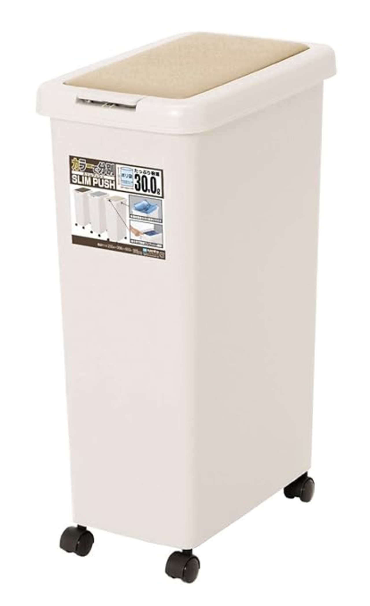 サンコープラスチック 日本製 ゴミ箱 スリムプッシュ 30L キャスター付き ライトベージュ