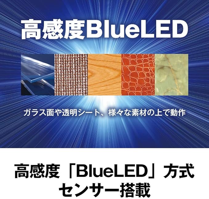 光学式やレーザー式を超えた高感度「BlueLED」方式センサー搭載