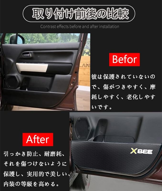 Hearsheng スズキ 新型クロスビー(XBEE) MN71S MN10系(2017年12月~現行)専用レザー材質ドアキックガード インナードアプロテクション ドアトリムガード 運 内装パーツ カスタム 保護パーツ 汚れ防止 傷防止 取り付け簡単 車種専用設計(カーボン調)4点セット