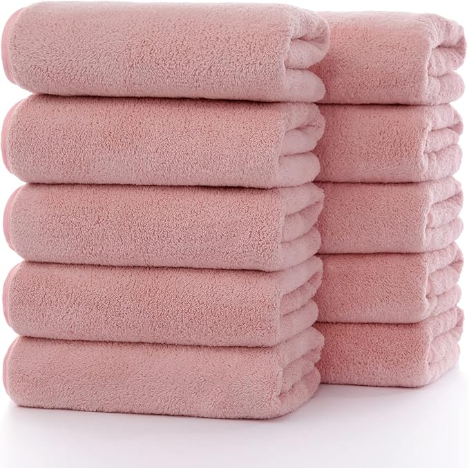 フェイスタオル マイクロファイバー タオル 10枚セット 約35x75cm ふわふわ なめらか 瞬間吸水 速乾 抗菌 防臭 家庭用 業務用 (ピンク)