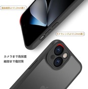 iPhone 15 ケース 耐衝撃 半透明 軽量 薄型 人気 PC 傷防止 滑り止め 指紋防止 米軍MIL規格 ワイヤレス充電対応 スマホカバー EUMADOVE (ブラック, iPhone 15)