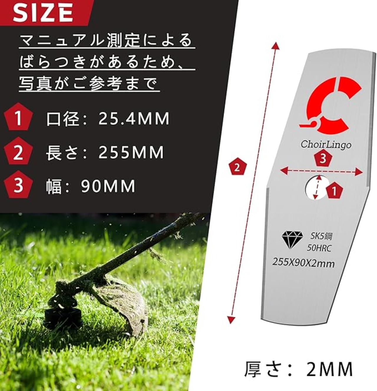 【効率的な草刈り作業】2枚セットの草刈り機 替え刃は、芝生や雑草の整理に最適で、一度でしっかりと刈り取ることができます。農業、園芸、ガーデニングなど幅広い用途に対応し、作業効率を大幅に向上させます。