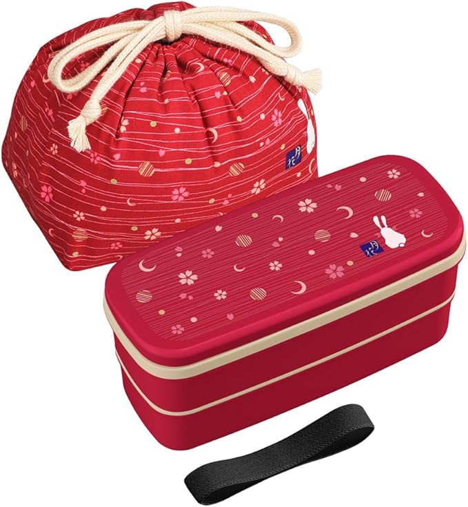 OSK(オーエスケー) 月花 ランチボックス 二段弁当箱 巾着袋 箸 仕切り付き 640ml 日本製 食洗機 電子レンジ対応 洗いやすい 汚れにくい おしゃれ かわいい コンパクト 男女兼用 PW-28C