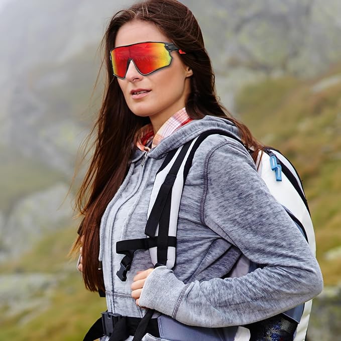 柔軟滑り止めゴム鼻パッド: 汗をかいたときにサングラスが落ちるのを防ぎ、顔にしっかりとフィットする柔軟滑り止めゴム鼻パッド。運転用 サングラスは高品質で超軽量、強度、柔軟性、安定性が高く、高速スポーツ時にクリアな視界を提供しております。ンニング、野球、運転、釣り、登山、オートバイや自転車、レース、スキー、トレッキング、アウトドア、多くのスポーツにこれらの偏光運動サングラスをかけて、負担感じず、長時間つけていても楽なのがうれしい