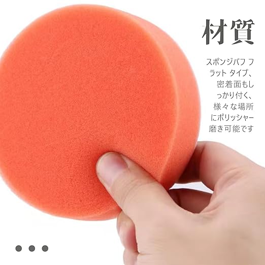 【材質】スポンジ。スポンジバフ フラット タイプ、密着面もしっかり付く、様々な場所にポリッシャー磨き可能です。