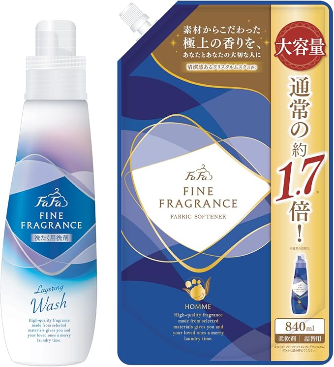 ファーファ 洗濯用 液体 洗剤 ファイン フレグランス レイヤリング ウォッシュ クラッシー ソープ の香り 本体 (600g) + 柔軟剤 ファイン フレグランス オム クリスタル ムスク の香り 詰替 (840ml) 1個 セット