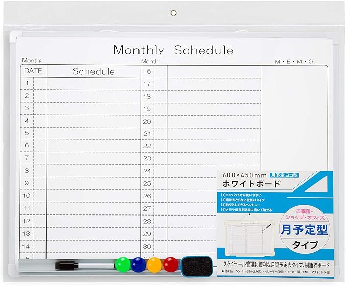 サンケーキコム ホワイトボード 樹脂枠 月予定 ヨコ型 600mm 450mm WB-6045-MY