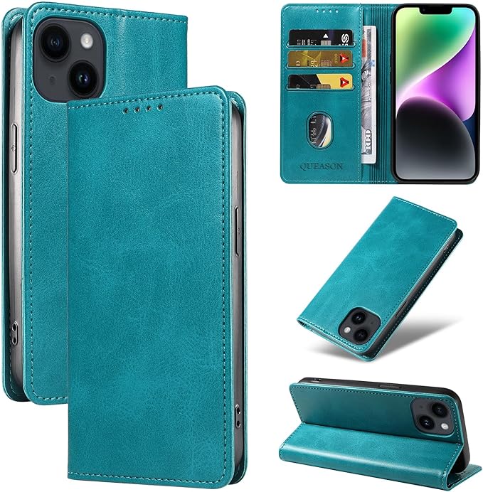 QUEASON 互換品 スマホケース【iPhone 14 ケース 手帳型】iphone14 ケース 携帯ケース いphone14 ケース 手帳型 スタンド機能 アイフォン14 ケース 手帳型 アイホン14ケース 手帳型 薄型ケース カード収納 落下防止 マグネット式 耐衝撃 肌触り良い 全面保護 防塵(ライトブルー)