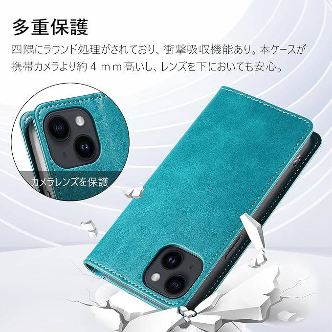 【多重保護】スマホケース iphone 14の四隅にラウンド処理がされており、衝撃吸収機能あり。内部のプラスチックはTPUソフトケースで、破損することはありません、取り付け・取り外しが簡単で、スマホ本体へのスレ傷が防止できます、衝撃から本体を360 保護します。使われているマグネット式の設計により、スマートフォンをしっかり固定できます、開閉簡単。