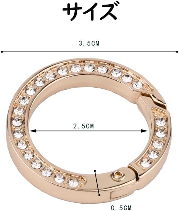 [サムコス] キーリング 10個セット 金色 おしゃれ カラビナ ラインストーン キラキラ 丸型 カバン飾り 鍵飾り バッグチャーム DIY手作りアクセサリー ジュエリー作り デコキット 人気 レディース