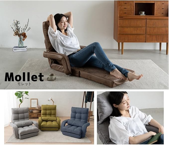 エムール 肘掛け付き 座椅子 Mollet ソファー シルバーグレー 折りたたみ 3WAY 14段階リクライニング 軽量