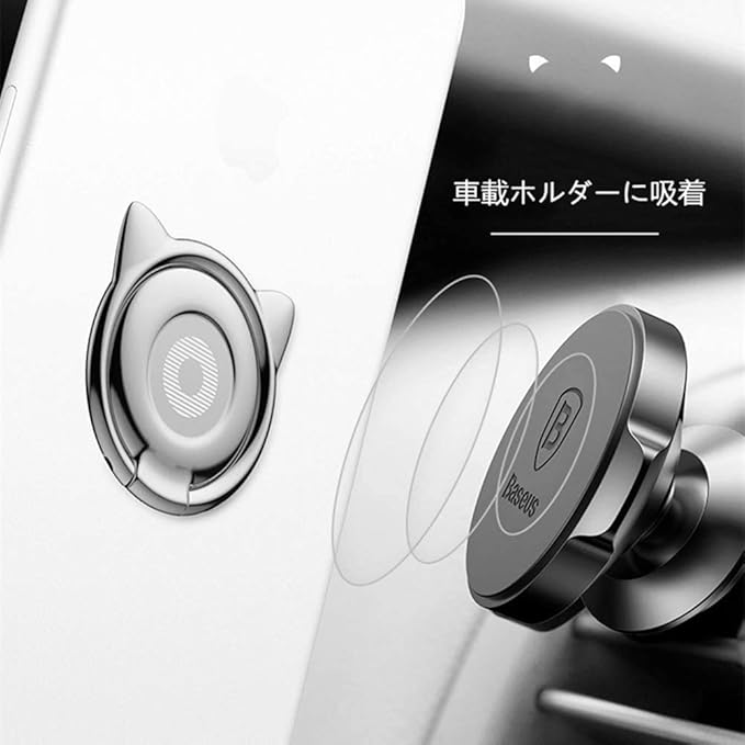 スマホリング 猫耳 ホールドリング 薄型 LMIFE バンカーリング 360度回転 落下防止 携帯リング 溢れ iPhone Android多機種対応 マグネット式車載対応