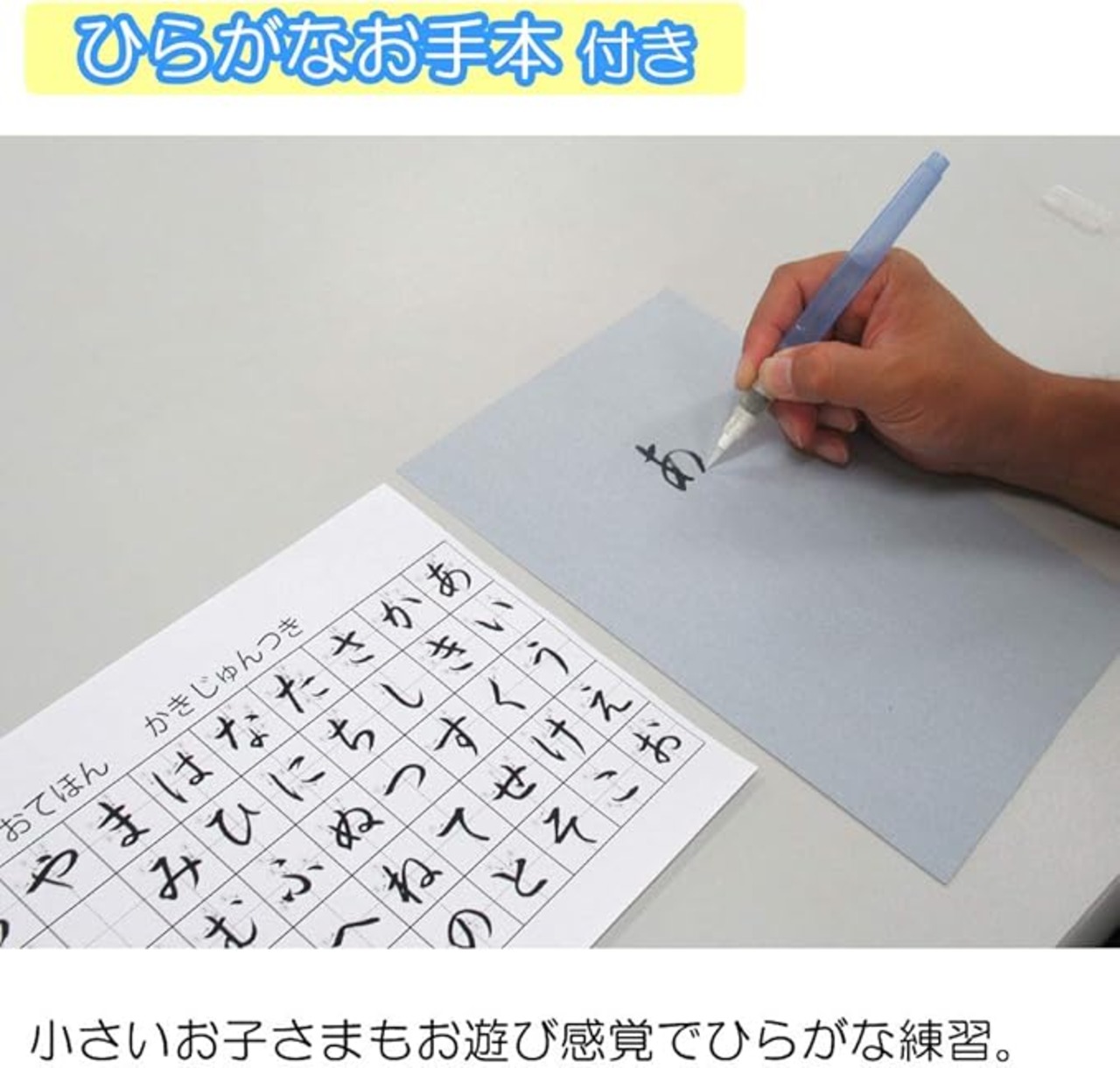 【セット内容】水書筆ぺん 1本、水書用紙(マス目入り) 1枚、水書用紙(無地) 2枚、ひらがなお手本付き