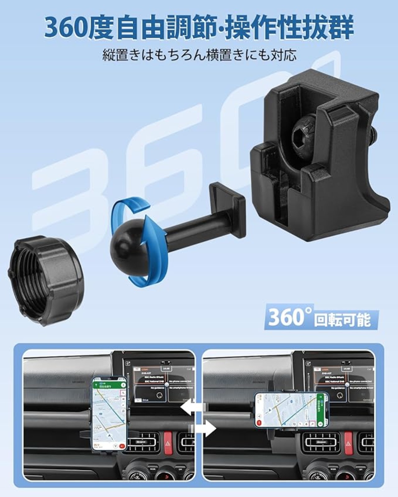 Cartist スズキ ジムニー ノマド JB64 JB74 JC74 専用 スマホ ホルダー JIMNY NOMADE/SIERRA 5ドアに適合 2018~ 携帯 ホルダー スマホスタンド ワンタッチ 鏡面 片手操作 360度回転 車載ホルダー 固定 雑音なし 取付簡単 Bタイプ
