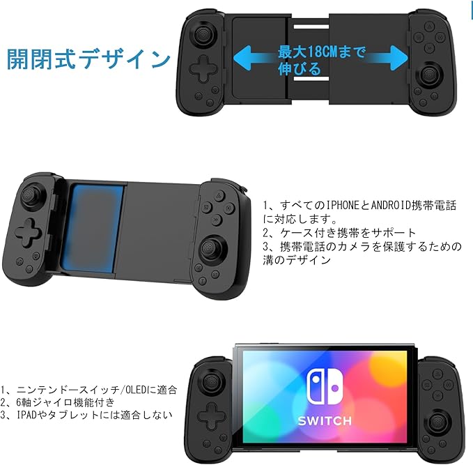 【複数のデバイスに対応】スマホ コントローラーはiPhone 15/14/ 14 Plus/ 14Pro/ 14 Pro Max,iPhone 13/Galaxy S22 Ultra/s22+/s22, Galaxy S21/S21+/S21 Ultra,Galaxy S20/s20+/tablet/Switch /Switch Lite/Switch OLED/PS3/4/PC に対応します。