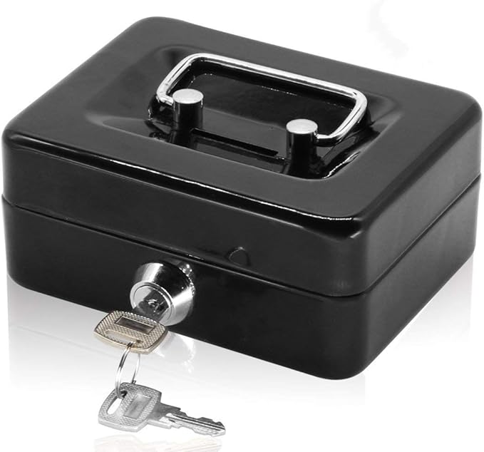 Jssmst(ジェスマット) 手提金庫 キーロック式 コインケース 貯金箱 金属製 ミニサイズ 軽量 子供 ギフト 15x12x8cm (黑 NEW)