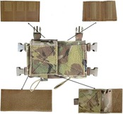 このシャーシをプラットフォームとして、ストラップやポーチ、インサートなど別売のアクセサリーを装着することで、 あらゆる形態のチェストリグにすることが可能。また、プラカードシステムとしてプレートキャリアに取り付けることもできます。