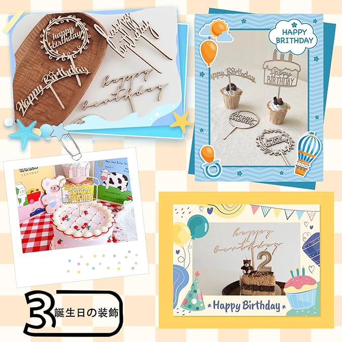 【広く使用されるシナリオ】私達の木のケーキトッパー 誕生日の装飾のために適しているだけでなく、写真の小道具、花束の装飾品および党背景の装飾として使用することができます。 ユニークなデザインと様々なスタイルは、あなたのお祝いに創造性と楽しさを追加し、すべてのコーナーが誕生日の喜びとお祝いの雰囲気でいっぱいになります。