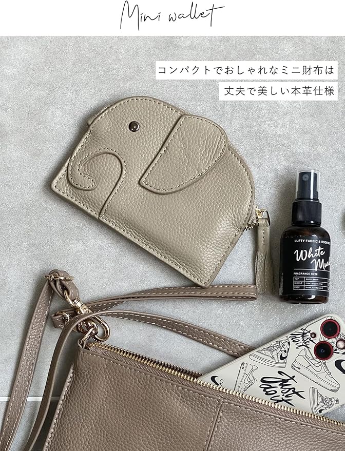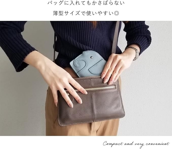 かわいいゾウモチーフの小銭入れ。人気の大人色をご用意しました。 牛革の優しい手触りが手に馴染む。長年ご愛用いただけます。カードポケットが3ヶ所と充実しているのも嬉しいポイント。 さらにキーリングも付属している為とっても便利。