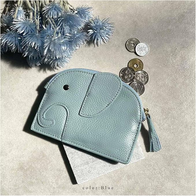 DIVA Rose 小銭入れ レディース コインケース ミニ財布 ゾウ 牛革 コンパクト 手持ち キーリング付き 薄型 (ブルー【カードケースなし】)