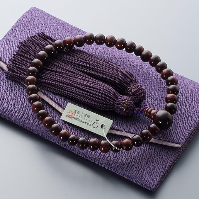 [仏壇屋 滝田商店] 数珠 女性用 紫檀 (艶あり) 8mm玉 正絹頭付房 数珠袋付き すべての宗派で使える 京念珠 証明書付