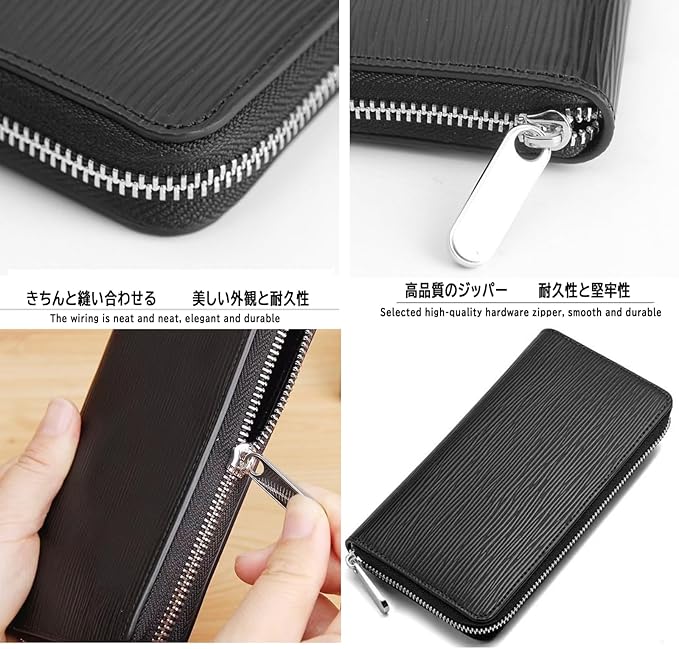 財布 メンズ 長財布 大容量 本革 盗難防止 セパレート小銭入れ 一流財布職人が作る 紳士用 ビジネス ファッション 牛革 ブラック