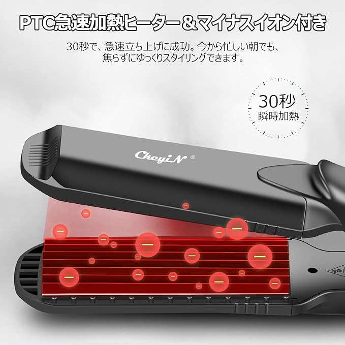 【4段階温度&30秒急速加熱】160℃、180℃、200℃、220℃4段階温度調節可能、軟毛・細毛・ダメージ毛・硬毛・太毛など、ご自身の髪に合った温度を合わせてご使用頂けます。PTCヒート技術で、わずか30秒均一に加熱されます。