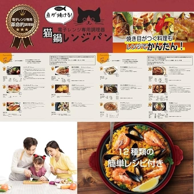 AiS to you (アイストゥーユー) 電子レンジ調理器具 グリルパン chef 猫鍋 レンジパン フタ付き レシピ付き レンジ調理 焼き魚 グリル 調理器具 時短 簡単 安全 キッチン 料理 (イエロー)