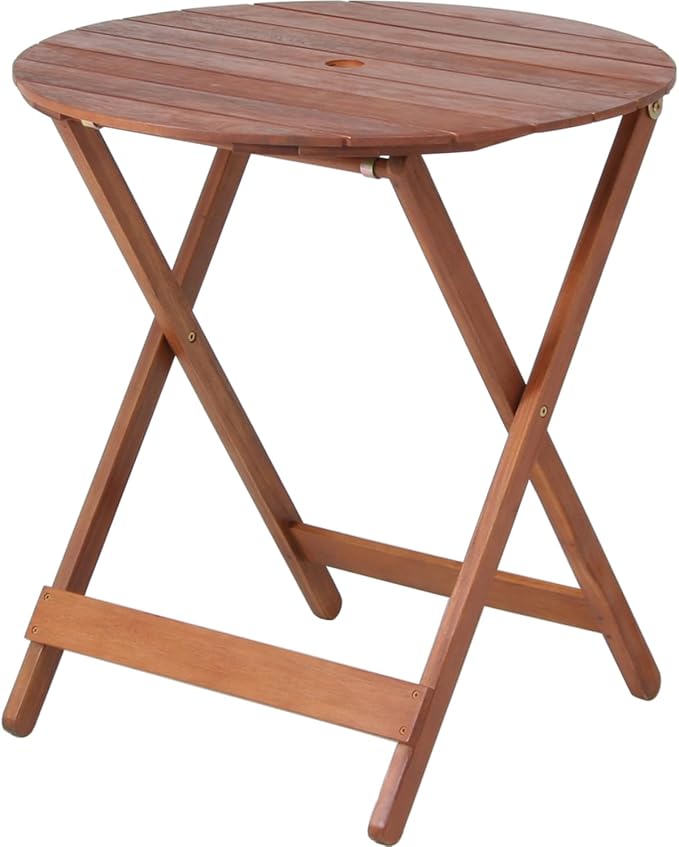 不二貿易 ガーデン テーブル ラウンド 幅68.5 奥行68.5 高さ72cm ブラウン 天然木 折りたたみ パラソルホールつき 81060