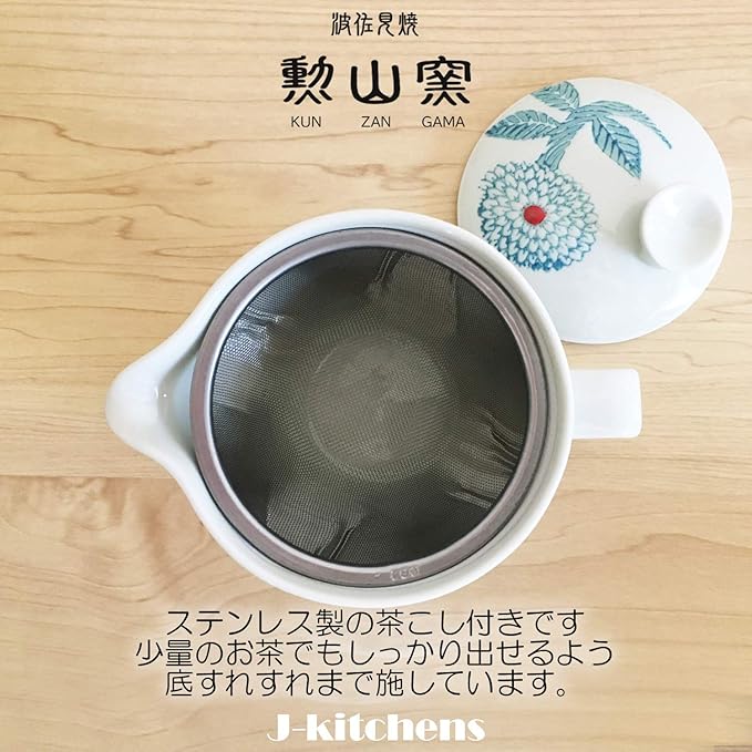 J-kitchens 勲山窯 急須 茶こし付き 240ml 1人用 ~ 2人用 波佐見焼 日本製 ダリア ブルー