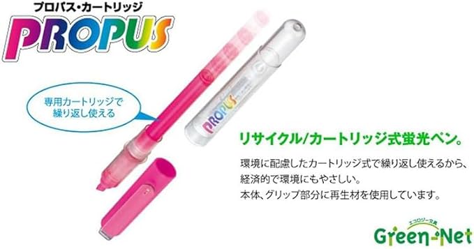 【本体+カートリッジ6色セット】 三菱鉛筆 プロパス 本体 6色パック + カートリッジ 6色 PUS1556C PUSR80 MITSUBISHI PROPUS 蛍光ペン カートリッジ式 ピンク オレンジ イエロー グリーン ブルー パープル + オリジナルロゴ入りシールつき