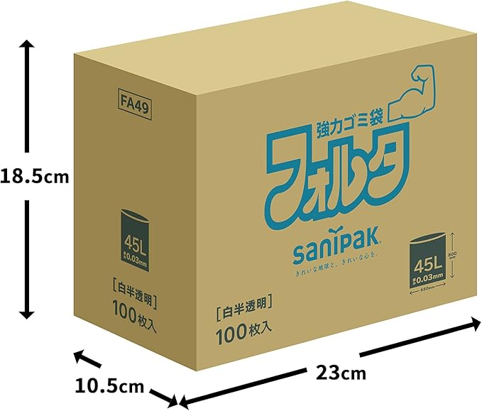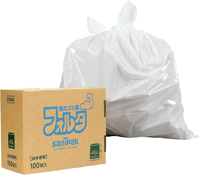 フォルタ ゴミ袋 白半透明 (45L 100枚 / 0.03mm) 箱入り 破れにくい 厚手 丈夫 (半透明ゴミ袋/破れにくいゴミ袋) 乳白色 業務用 家庭用