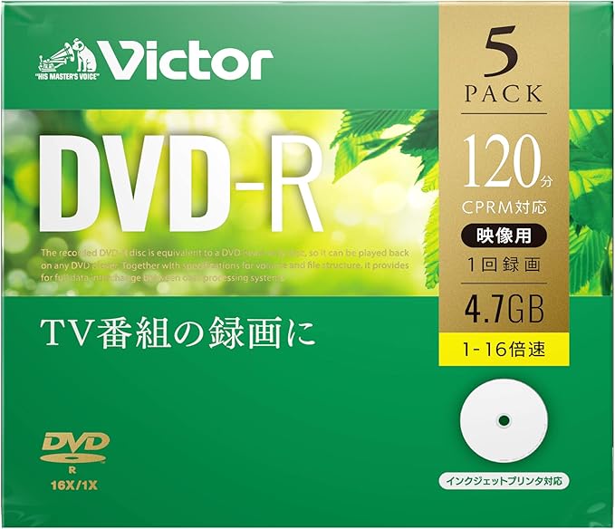 ビクター(Victor) 1回録画用 DVD-R VHR12JP5J1 (片面1層/1-16倍速/5枚)