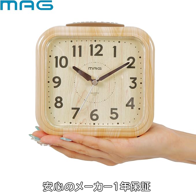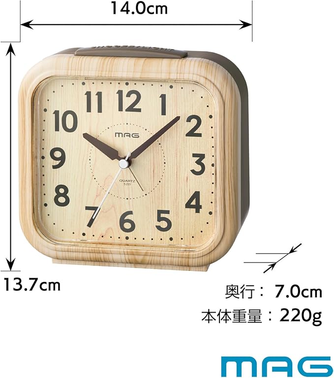 MAG(マグ) 目覚まし時計 置き時計 おしゃれ インテリア アナログ 静音 連続秒針 電子音 アラーム スヌーズ ライト ナチュラル 木目 グレイン T-777A N-Z ノア精密