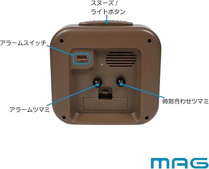 機能:電子音アラーム、止めてもまた鳴るスヌーズ機能、ライト機能