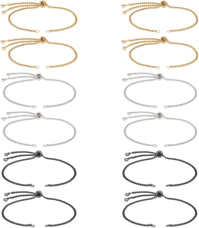 UNICRAFTALE 約12本 3色 調整可能ブレスレット 26cm ラインストーン付き ステンレススチール スライダーブレスレット バングル作り ブレスレット作り スライダーチェーン スライダーブレスレット 半完成ブレスレット ジュエリー作り アクセサリーパーツ 手芸 DIY用品
