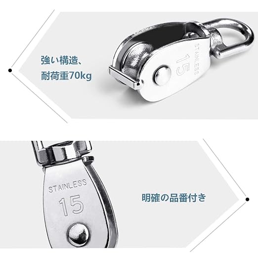 Rhinocats 滑車 M15 ローププーリー スイベル式 ステンレス滑車 豆ブロック 耐荷重70kg 二個セット