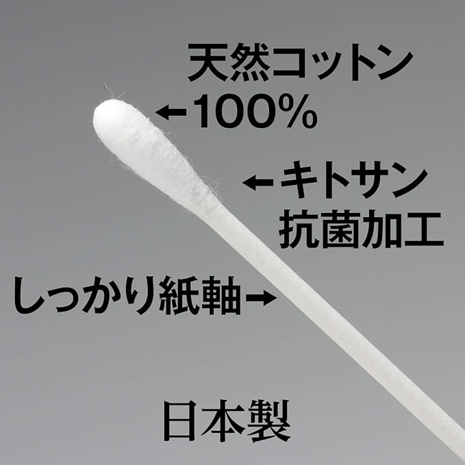お得な2個セット。ベトベト耳あかにも使える。もちろんシャワー後の仕上げにも。天然抗菌成分キトサン配合の安心の綿棒です。