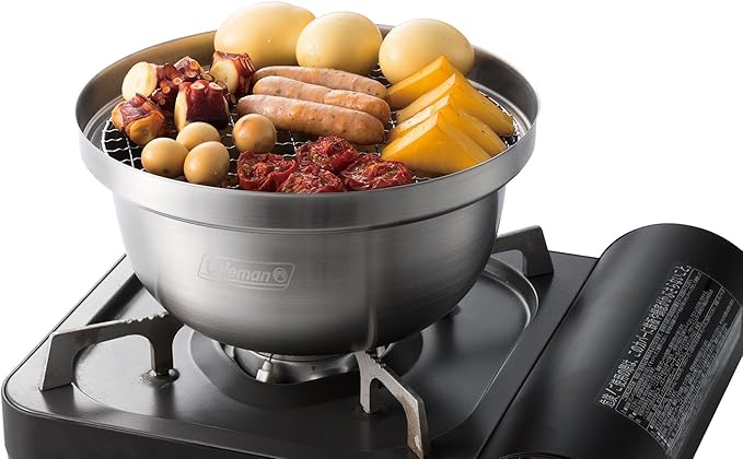 家でもキャンプ場でもコンロで手軽に熱燻ができるスモークポット。