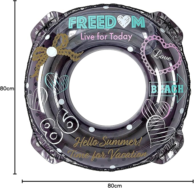 膨らんだ状態の浮輪の内周が約105~110センチの浮輪です。対象年齢12~17歳くらいのティーンに最適。
