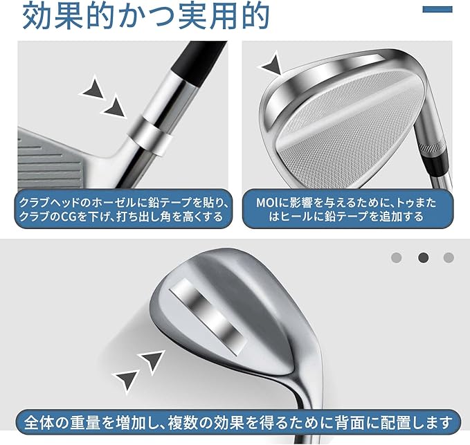 ⏩️【取り付け方法】1、表面は清潔にしてください。ほこりや汚れの多い表面では、リードテープが貼り付かないことがあります。2、鉛テープは目標重量に合わせてカットしてください。3、テープを引き剥がし、表面に貼り付ける。4、完成、あなたはより良いスイングの経験を得るでしょう。